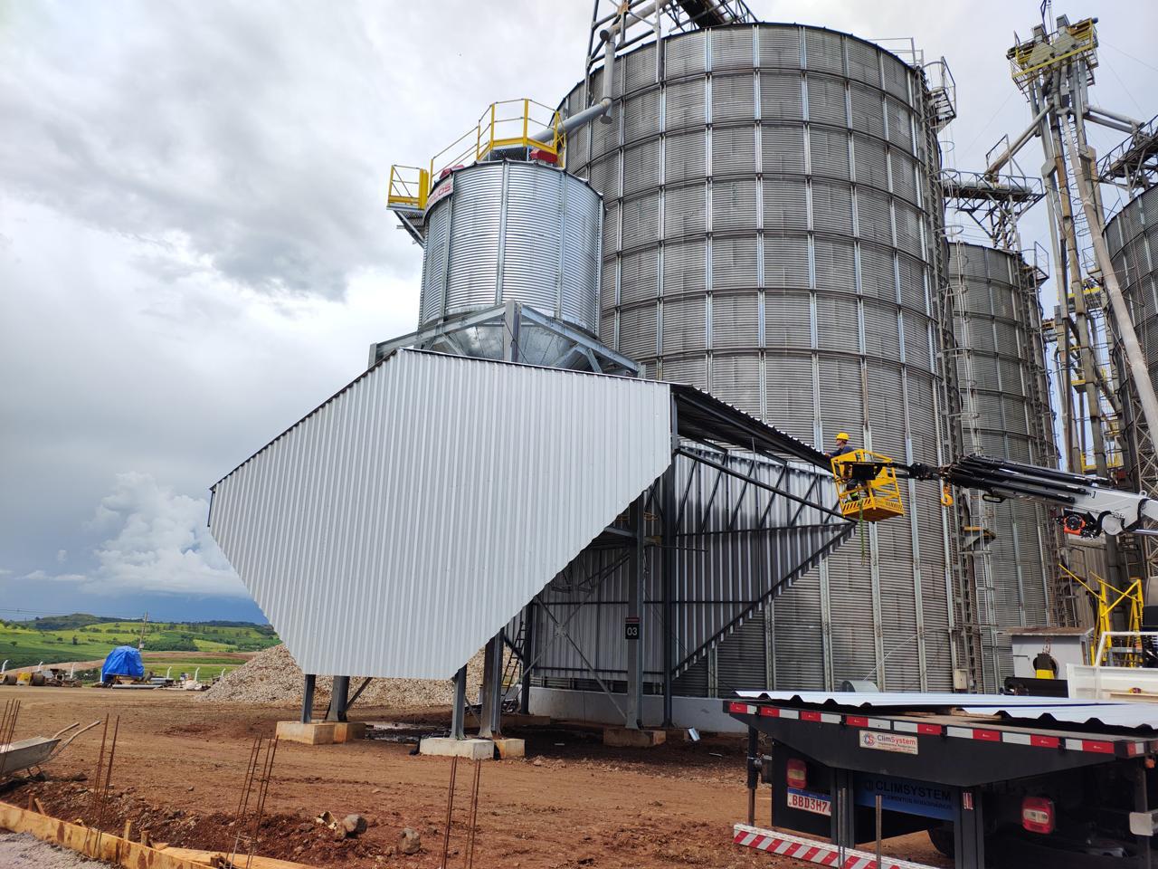 Fundação, piso e cobertura metálica para silo de expedição